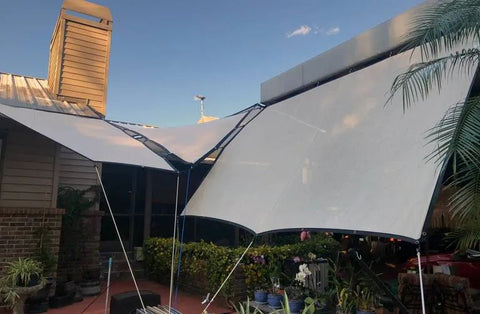 The sunshade net can be fixed with a steel wire rope, or it can be tied to the gallery frame and the arch bracket.