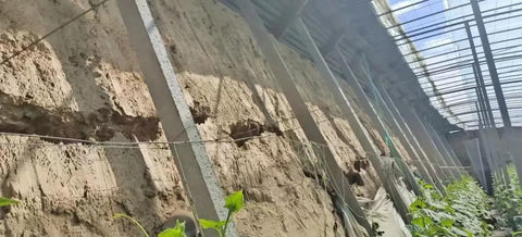 ② For the earth wall solar greenhouse after the roof to cover the film, to prevent rain infiltration damage wall.